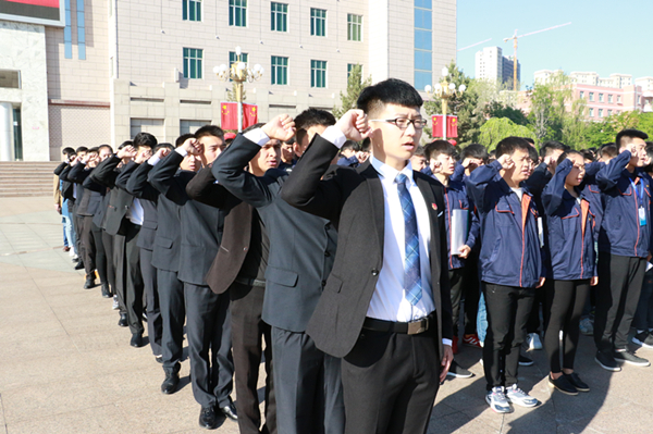 最后团员代表张泽轩进行了青年代表献词,他表示,青年人应当铭记五四精神,牢记习近平总书记的殷切期望和深情嘱托,自觉肩负起维护新疆社会稳定和长治久安的青春责任,热爱中国共产党、热爱祖国、热爱中华民族大家庭,与全疆各族人民一道,以扎实的作风、有力的行动和优异的成绩迎接党的十九大胜利召开!