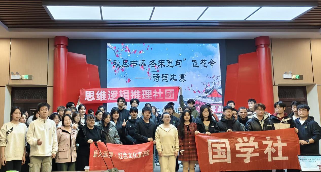 为深入弘扬中华优秀传统文化,践行“将马克思主义基本原理同中华优秀传统文化相结合”的重要理念,11月20日,由马克思主义学院主办、薪火逐梦·文化宣讲社承办的“秋尽书怀 冬来觅句”主题飞花令诗词比赛在马克思主义学院虚拟仿真思政教学体验中心圆满落幕。本次活动吸引了来自思辑推理社、国学社、阡陌文化社及各学院的大一、大二诗词爱好者齐聚一堂,以诗会友,共赴一场思想性与艺术性并重的文化盛宴。