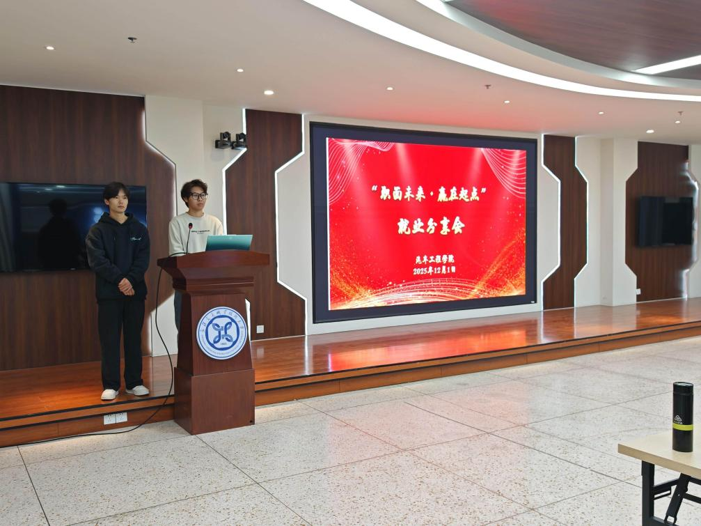 12月1日下午,汽车工程学院举办“直面未来 赢在起点”就业分享会。协鑫集团西北运维公司校友张艺博、周骏受邀返校,与2024级新能源汽车检测与维修技术专业学生面对面交流。