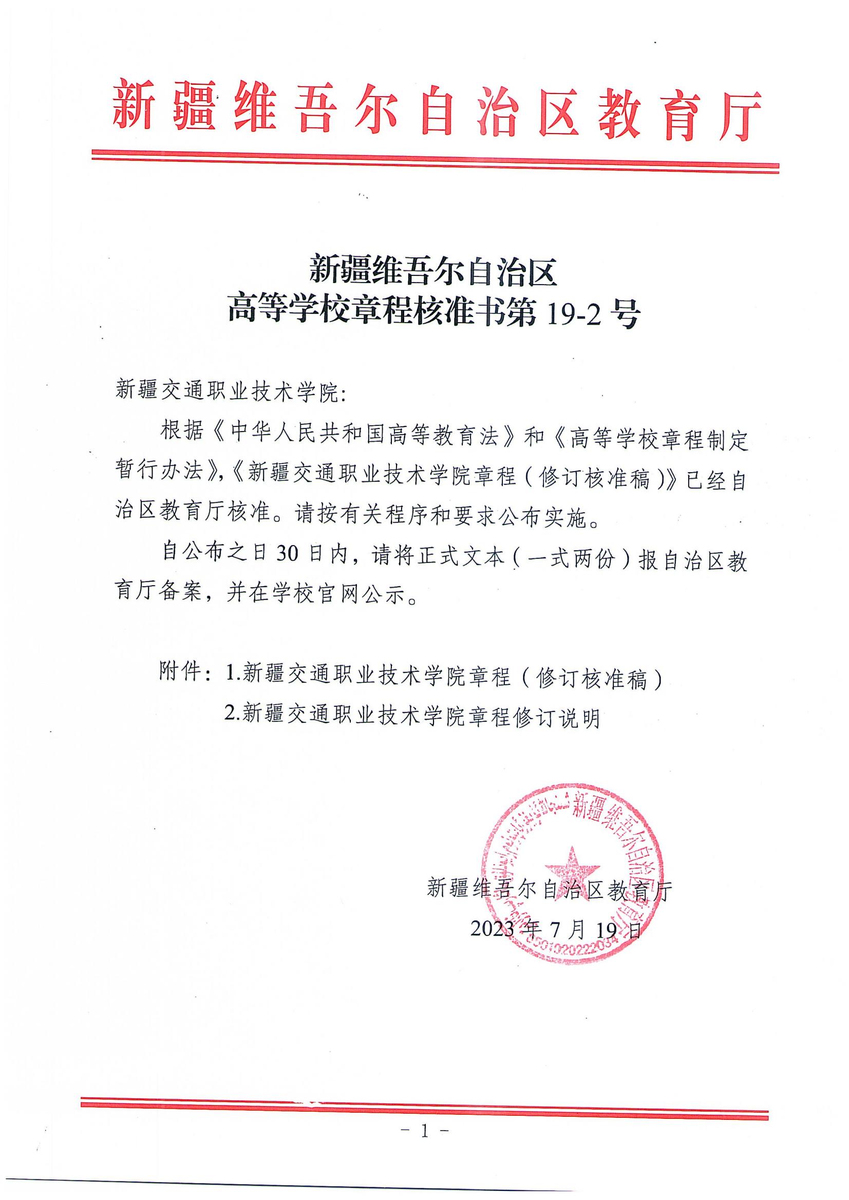 新疆交通职业技术学院章程(2023年修订核准稿).pdf